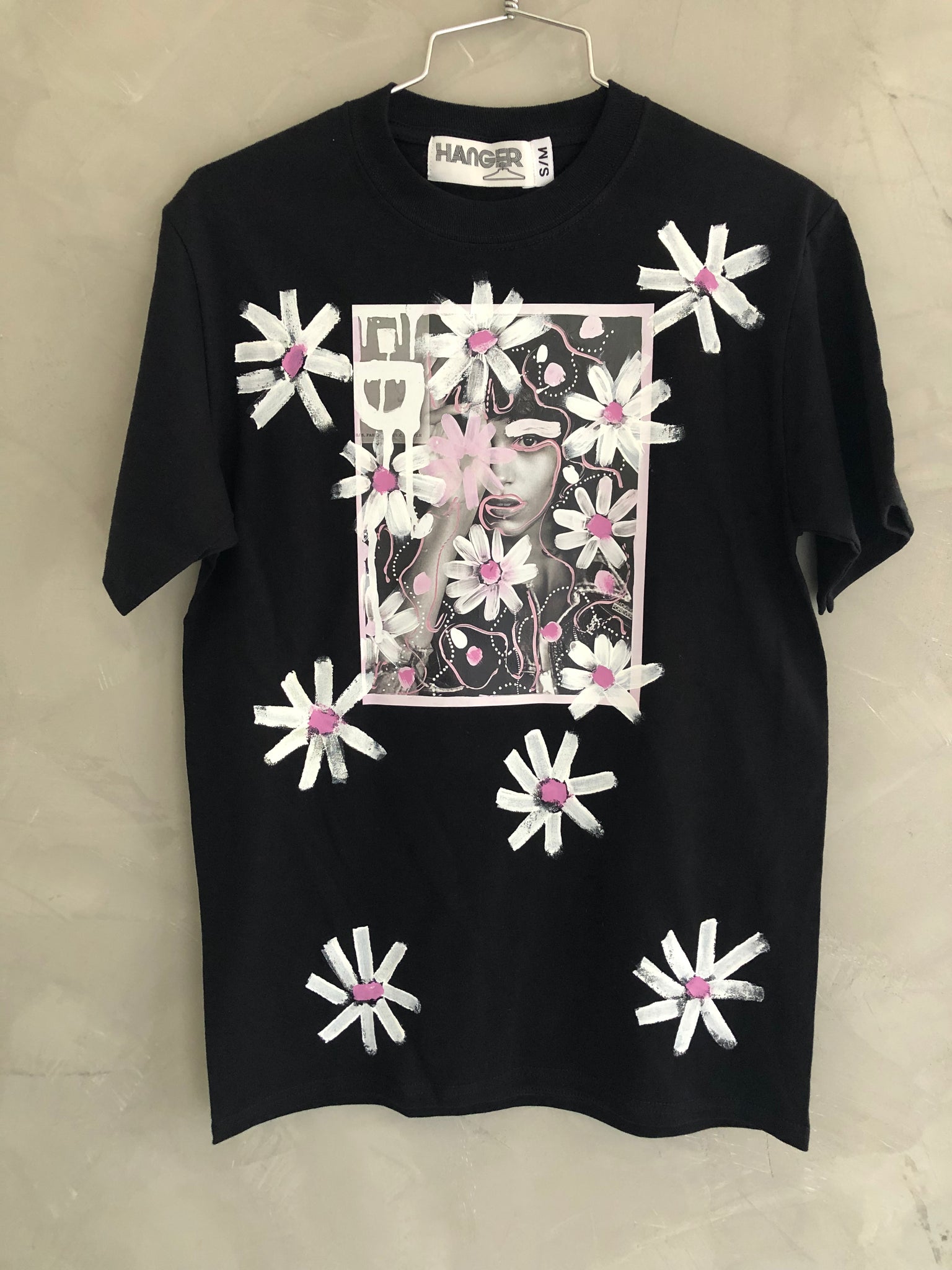Playera de 100% algodón con estampado transfer y detalles pintados a mano con pintura acrílica textil.