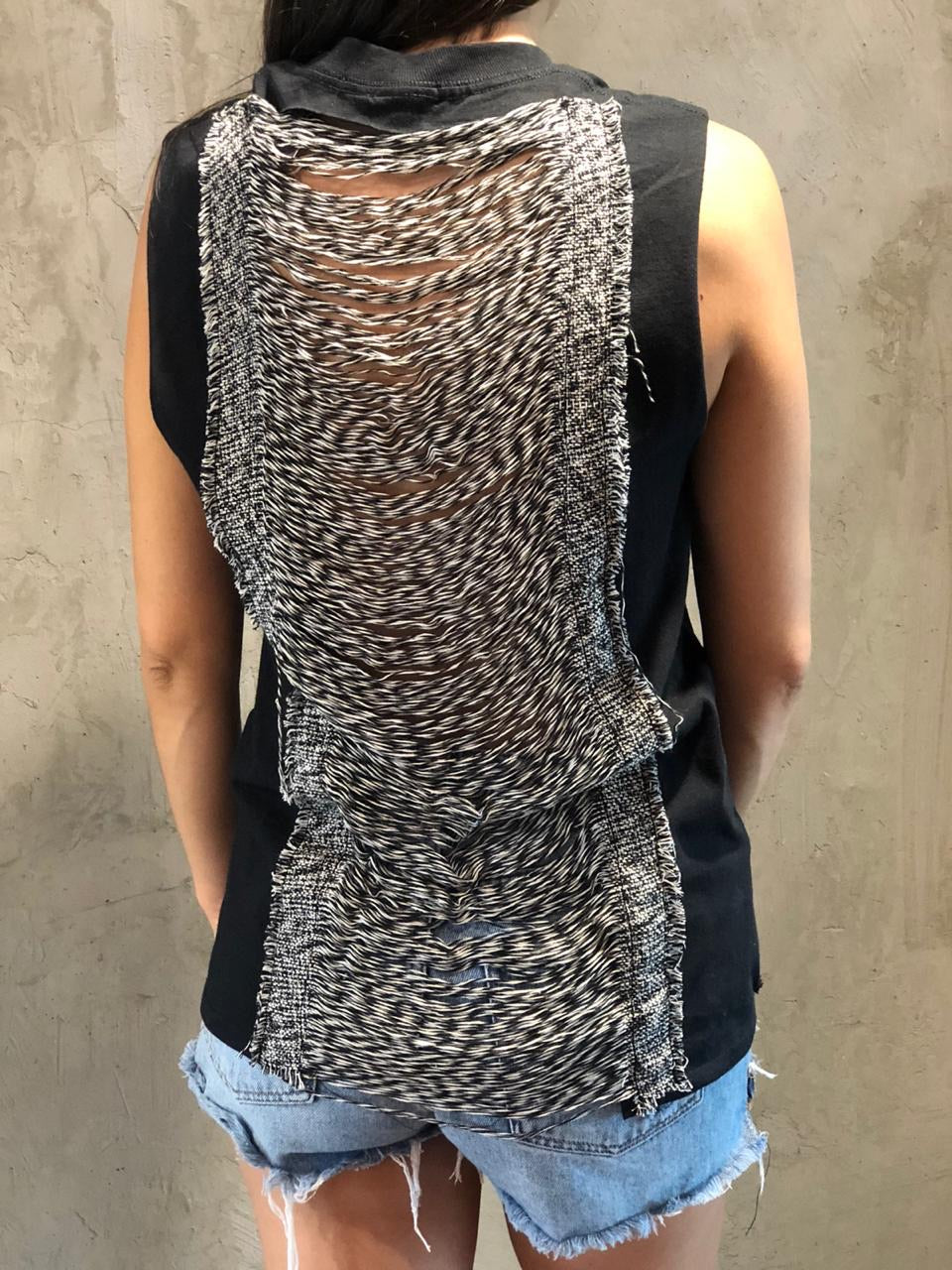 Playera de 100% algodón con estampado transfer sin mangas con detalle en espalda semi descubierta.