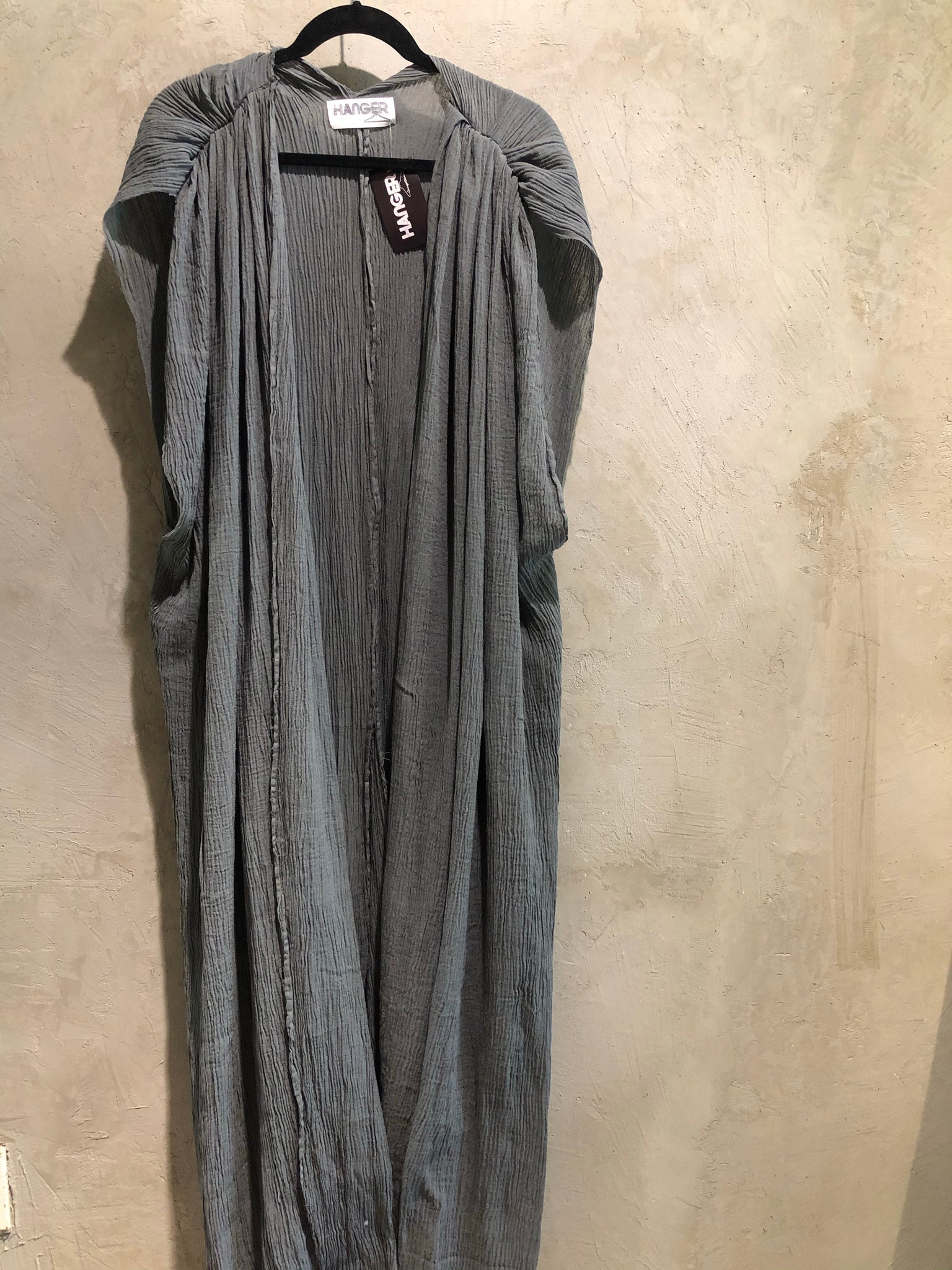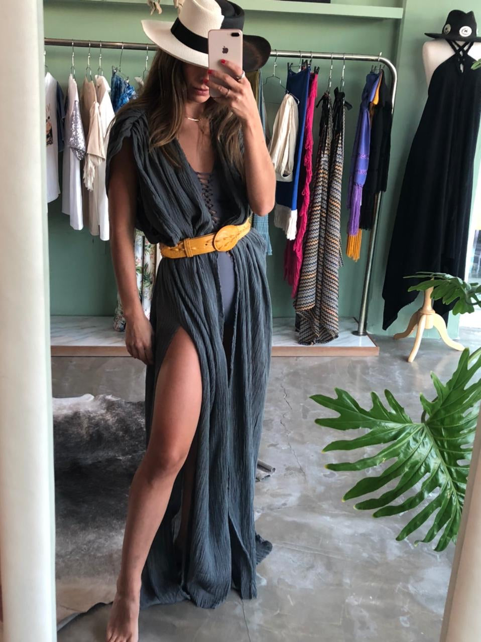 COVER UP EN COLOR GRIS EN TELA DE MANTA CORRUGADA CON ABERTURA EN PIERNA COSTADOS Y DE TRAS
