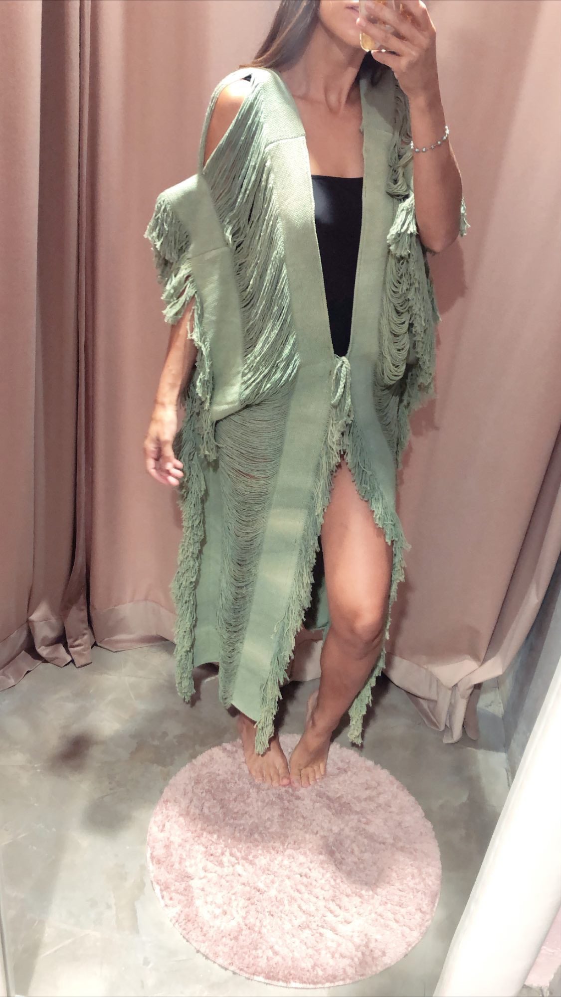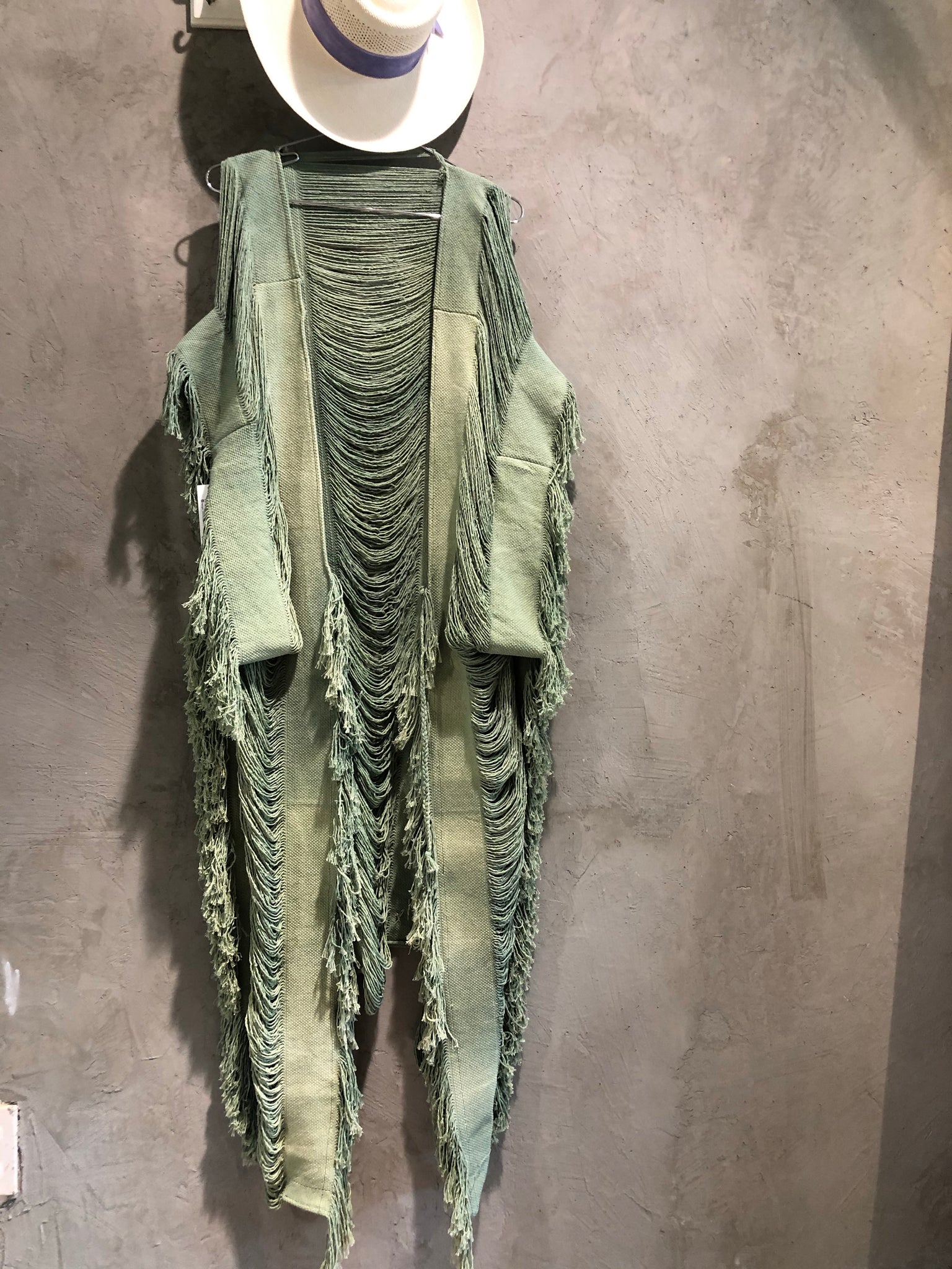 Confeccionada en 100% manta de algodón deshilachado, textil tejido artesanalmente, Salida de baño tipo kimono larga con abertura adelante y amarres para cerrar, teñida en color verde.